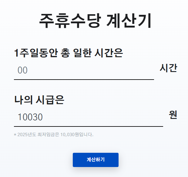 - 1일 유급 주휴수당 = (1주간 평균 일일 근로시간) × (시급)
