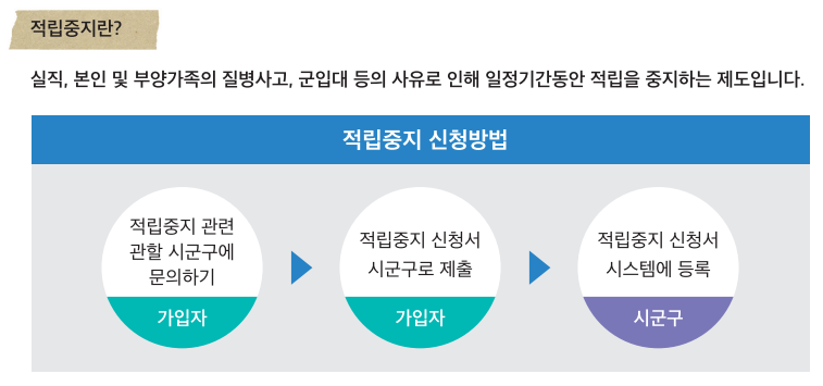 - 대상: 군 입대자, 임신/출산으로 인한 퇴직자, 육아휴직 중인 가입자