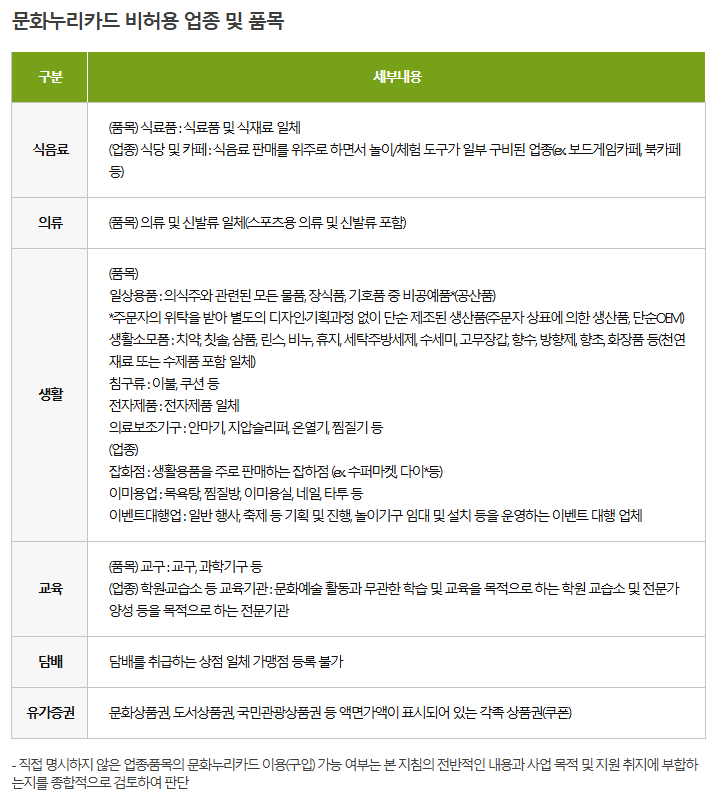 - 다품목을 취급하는 마트, 백화점 내 서점, 지정된 ‘문화누리카드 온라인 가맹점’이 아닌 온라인 사이트 등에서는 이용이 불가능합니다.
